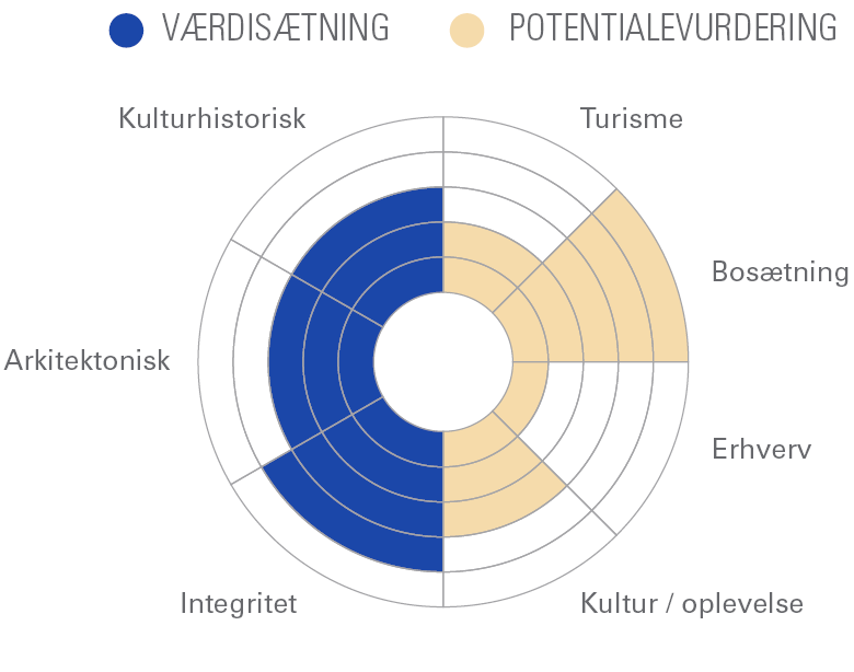Det er derfor vigtigt, at områdets bygninger bevares, fastholdes i deres oprindelige udtryk, og ændringer foretages varsomt og med respekt for arkitektur og detaljerigdom.